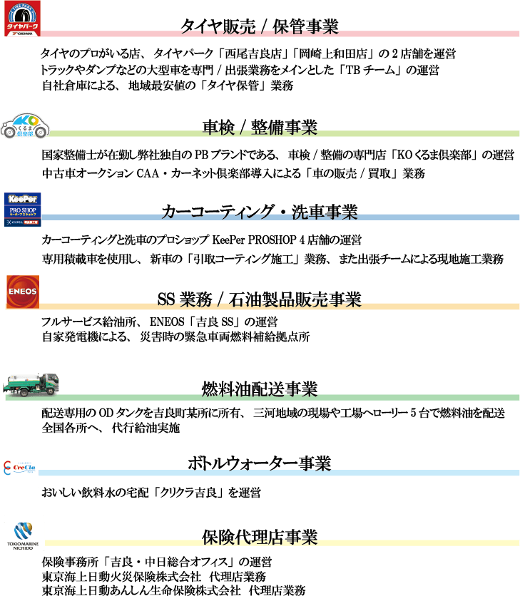 | 2017年10月 | 車検・車販事業「KOくるま倶楽部」 吉良SS 上和田SSにて開始 |