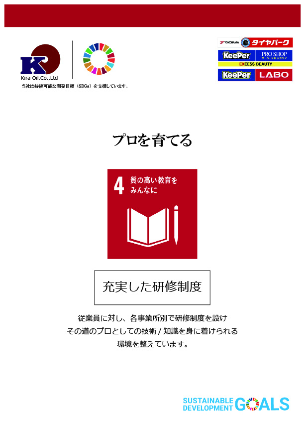 従業員に対し、各事業所別で研修を設け「その道のプロ」としての技術/知識を身に着けられる環境を整える。