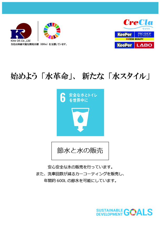 ①カーコーティング「ECOプラスダイヤモンドキーパー」を販売し、年間約600Lの節水を可能にしている。